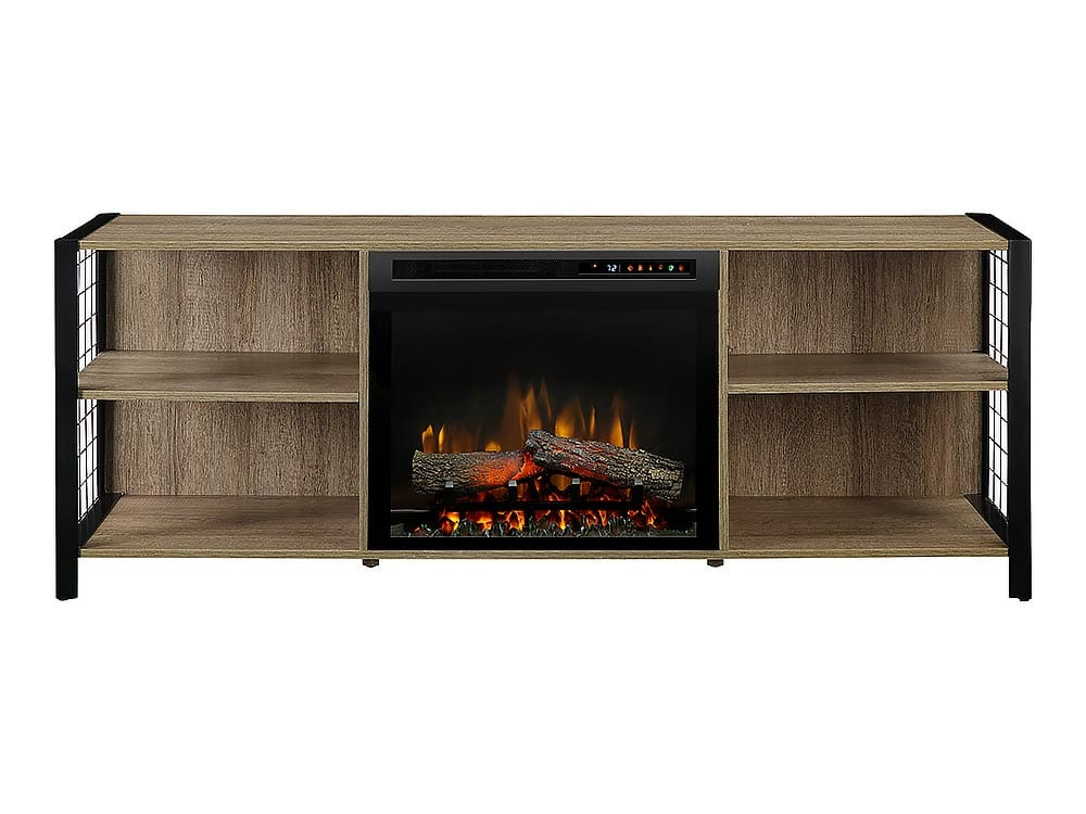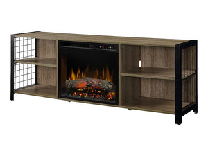 Asher Electric Fireplace TV Stand w/ Logs in Tudor Oak
