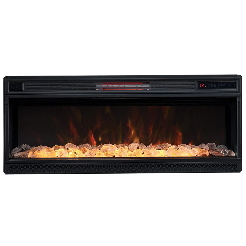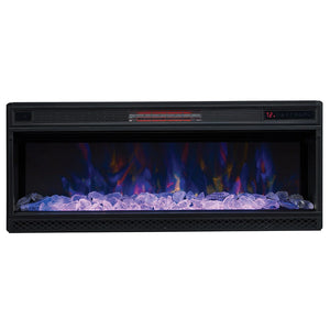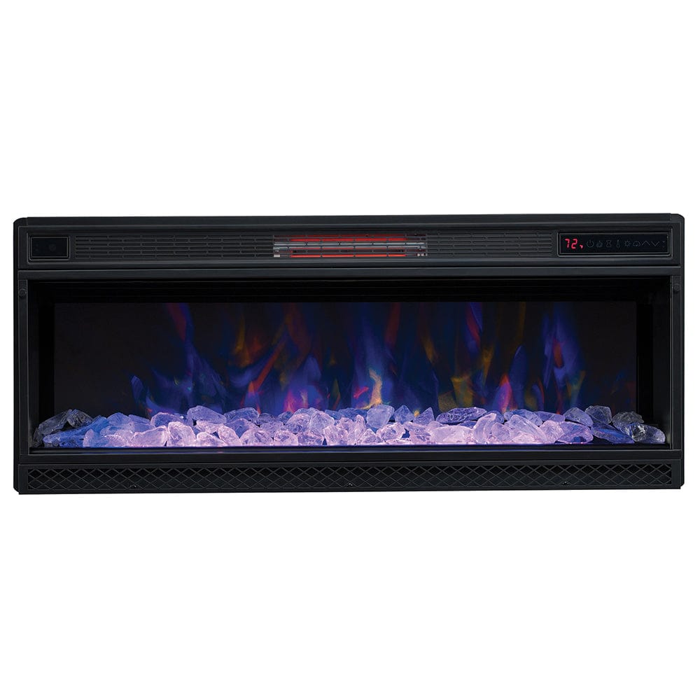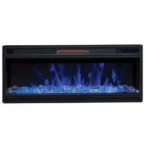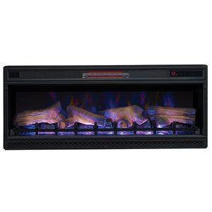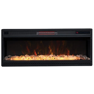 At the center of the Berkeley is a truly stunning 42" linear electric fireplace. The firebox features 2 different ember bed options - large glass crystals and a resin cast log set (all included). The impressive LED lit 3D SpectraFire Plus flame effects create a beautiful illusion that will make you forget it is not a real fire. Choose from any combination of 5 flame colors, 5 flame speeds and 5 flame brightness levels to create a customized look. The firebox also features a supplemental infrared heater capable of producing heat for rooms up to 1,000 Sq. Ft. A multi-function remote control is also included and allows you to operate the temperature,flame/color and on/off timer. Create an inviting and trendy appeal to your home, apartment or loft with the addition of the Berkeley Infrared Electric Fireplace TV Stand.