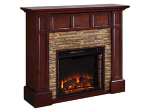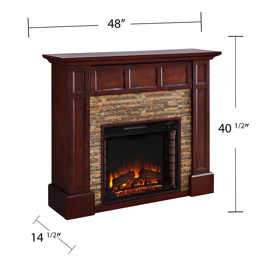 At the center of the Broyleston mantel sits a beautiful 23" LED lit firebox that recreates the appearance of a wood burning fire with heightened realism. The unit's life-like logs and ember bed, coupled with adjustable flame brightness levels, create a truly believable and authentic visual experience. Integrated within the firebox is a standard fan-forced heater that can fill spaces up to 400 Sq. Ft. with comforting supplemental warmth. A convenient hand-held remote is included with the unit and allows you to easily operate the various functions of the fireplace (heater, flames, & on/off timer).