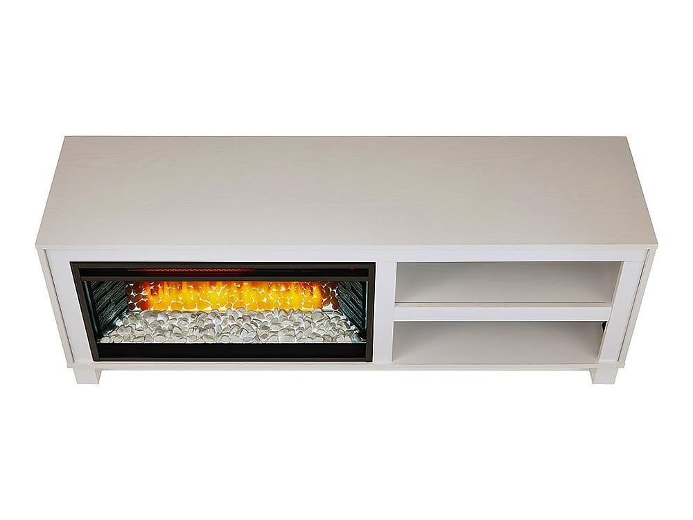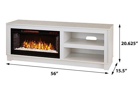 Should your space ever need additional warmth, simply engage the integrated supplemental infrared heater capable of warming areas up to 1,000 Sq. Ft. in size. Wrap yourself in comforting warmth that does not dry out your air, but rather works with the natural humidity within your room. The fireplace comes with a multi-function remote that allows you to set your desired temperature, adjust the flame brightness, as well as set the on/off timer. Give your room the perfect amount of contemporary appeal with the addition of this chic, low-profile TV stand.