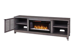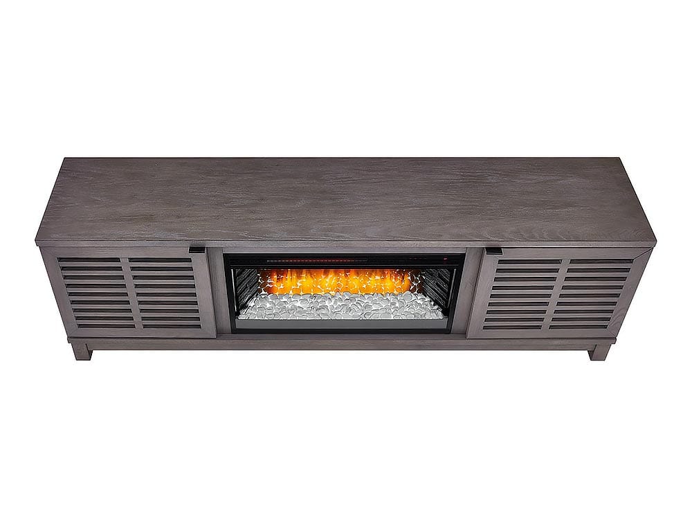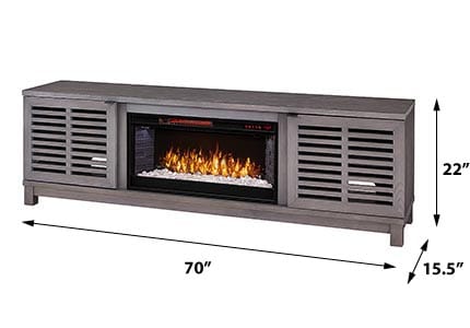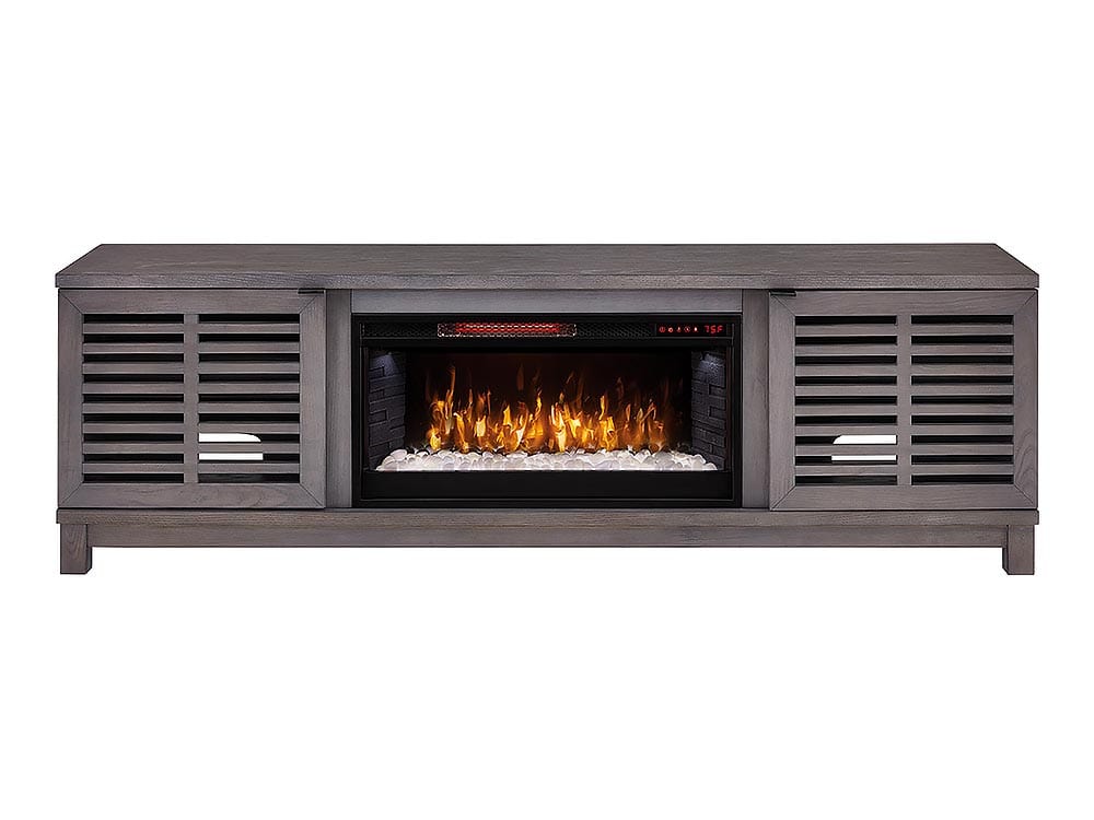 At the center of the console is a contemporary firebox that features a beautiful flame effect that perfectly complements the glass or white rock ember bed (both included). You'll love the soothing ambiance this charming fireplace will create for your space with the simple press of a button. The firebox also features an integrated infrared heater that fills spaces up to 1,000 Sq. Ft. with supplemental warmth. Take the chill out of your space so that your nights in front of the television are that much more comfortable and inviting. The fireplace comes with a multi-function remote that allows you to set your desired temperature, adjust the flame brightness, as well as set the on/off timer.