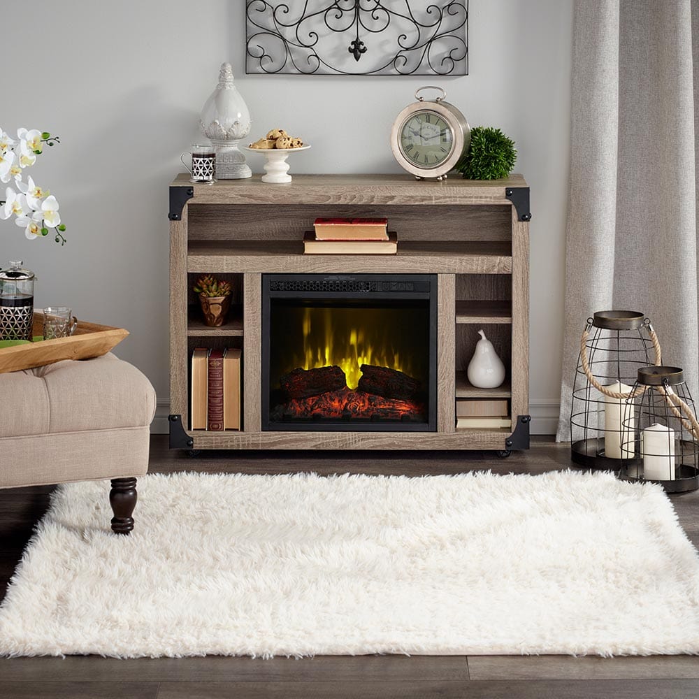 This Chelsea features an 18" firebox with stunning LED lit flame technology, glowing logs, and a red/orange flame effect. Equipped with a powerful and energy efficient infrared heater, you'll be able to fill spaces up to 1000 sq.ft. in size with comforting supplemental warmth. The very realistic flame effect offers you endless ambiance with 5 flame brightness levels. This unit also features a multi-function remote for easy user-friendly operation of the heater, flames and on/off timer. Cozy up, turn a good movie on and enjoy your Chelsea Electric Fireplace TV Stand from the bed!