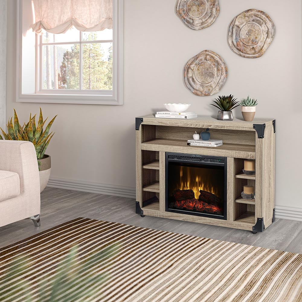 Chelsea Infrared Electric Fireplace Media Cabinet in Distressed Oak