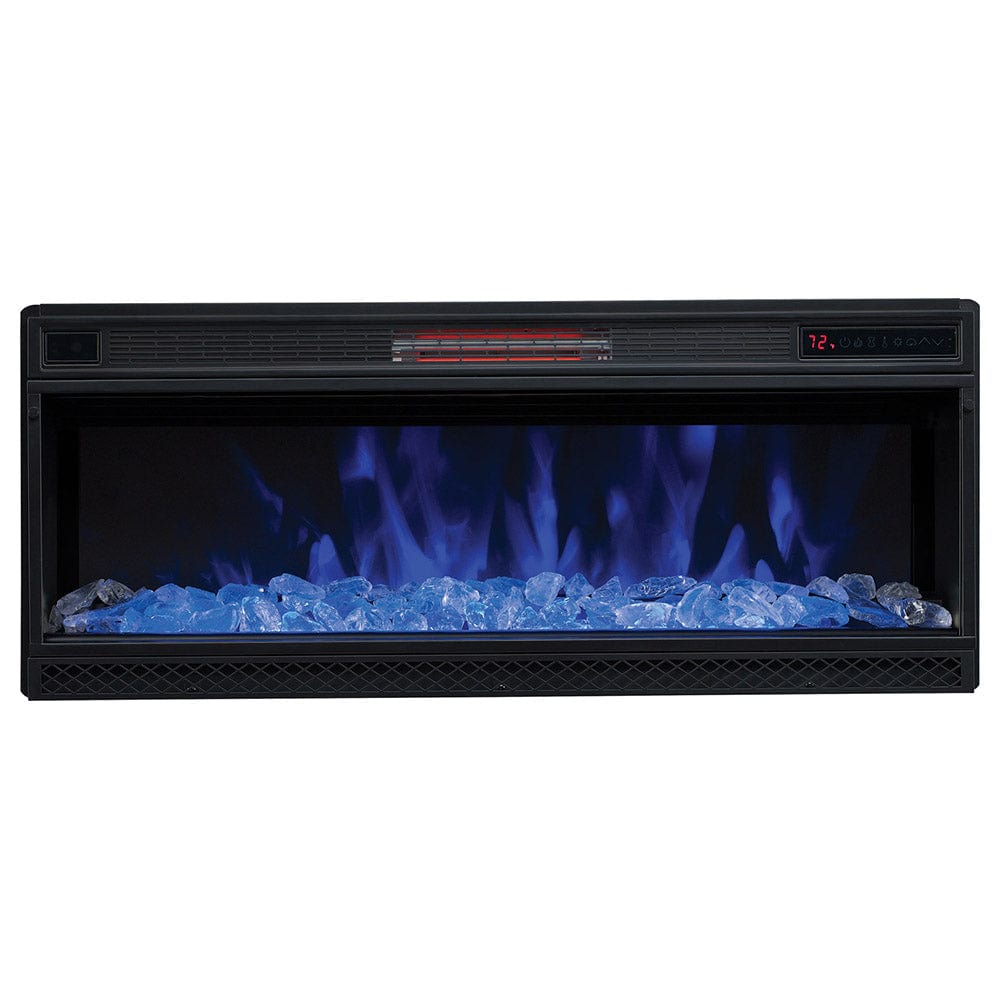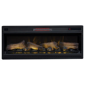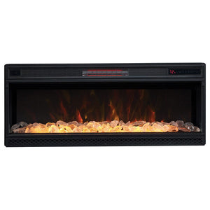 The large, linear 42" firebox is a true showstopper from the moment you turn it on. Featuring an interchangeable ember bed of logs and large glass crystals, all of which are included, you'll be able to create the perfect look for your tastes. The bright LED lit 3D SpectraFire Plus flame effects create a truly remarkable and soothing illusion that is sure to put you at ease after a long and busy day. Choose from any combination of 5 flame colors, 5 flame speeds and 5 flame brightness levels to create a customized look. For when the temperature turns bitter cold, the firebox features a infrared heater that is rated to produce supplemental warmth for areas up to 1,000 Sq. Ft. in size. You'll be able to easily set the desired temperature and simply let the firebox do the rest of the work. For your convenience a multi-function remote control is included and gives you complete control over the various functions of the firebox (flames, temperature & on/off timer).