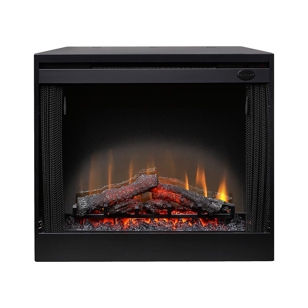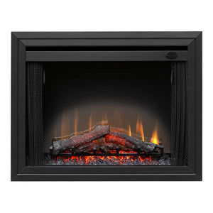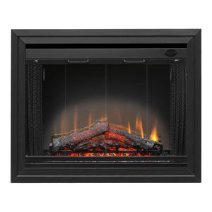 The Dimplex 33" LED Built-In Electric Fireplace is easy to install with the choice to hardwire into either 120V or 240V electrical circuits. The flame technology is patented by Dimplex to provide a realistic looking fire with glowing logs, pulsating embers and a realistic LED flame effect. You will also be able to enjoy the warmth of the fireplace to provide enough heat to warm a room of between 400 and 800 square feet depending on the voltage. The Dimplex 33" LED Built-In Electric Fireplace can be enjoyed any time of the year with the ability to turn the heat off and just enjoy the flame. The working mesh pull screen is included along with an On/Off remote controll. You can even utilize the included 3-piece trim kit if desired to get the most out of the look of your new fireplace. Install into any interior or exterior wall or corner. *Photo Gallery: Door options NOT shown with BFSL33 firebox. For representation of doors ONLY.
