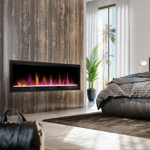 The 60" Slim also features a supplemental heater that can warm up to 400 square feet, making it perfect for cozy nights in or taking the chill off on a cool day. And if you just want to enjoy the flames without the heat, you can easily turn off the heater with the press of a button. For easy operation of all the flames, heater and on/off timer, a remote control is included. Plus, the Flame Connect app for your mobile device can be downloaded and used for remote operation.