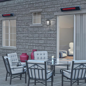 The Dimplex 1500W Infrared Heater is rated for both indoor and outdoor use, making it the perfect way to create a comfortable environment in both enclosed patios and outdoor porches. This precision engineered ceramic glass heater utilizes tinted glass to help reduce the ambient glow of the heater, while producing excellent infrared transmission. Designed for maximum efficiency, the heater reaches maximum heat power within 8 seconds of turning the unit. You'll be enjoying the beauty of the outdoors, but without the unpleasant chill in no time at all with the addition of this industry leading heater by Dimplex.