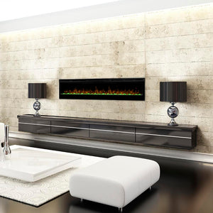 Enjoy the Dimplex Prism 74" Electric Fireplace year round. The heater and flame effects are completely independent from one another. This means you can enjoy the flames without heat during the warmer months, flames with heat for the winter or even the heater without flame effects (perfect for bedrooms or where distracting lighting isn't desired). Enjoy safe, efficient, supplemental heat to warm areas up to 400 Sq. Ft. with the fully integrated fan-forced heater. Set and forget the desired temperature for your room to enjoy worry free heating. The Dimplex Prism 74-Inch Electric Fireplace is a breathtaking unit with incredible versatility. Add one to your home or business today!