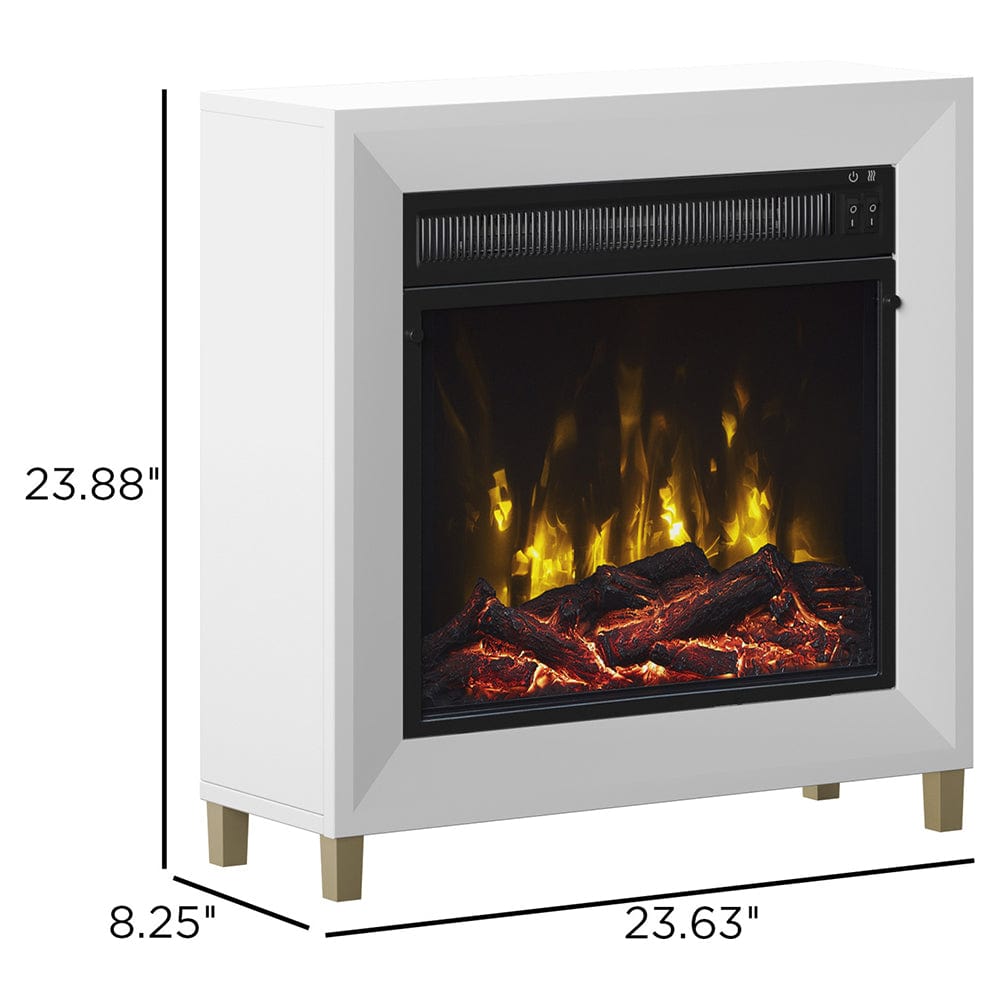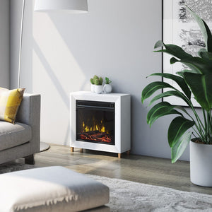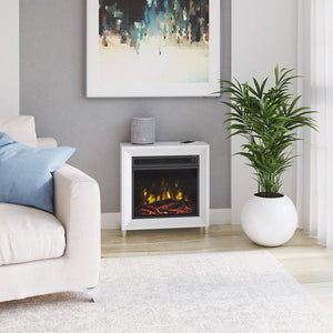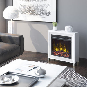 Bring a chic, modern accent piece to your loft, apartment or studio with the Dorrance White Electric Fireplace. Small in stature, the Dorrance fits perfectly in bedrooms and smaller areas. Independent flame and heat controls allow you to enjoy the life-like and soothing flames even in the warmer months while the heat is off. During colder months, simply engage the powerful 4,600 BTU, fan-forced heater to produce supplemental heat for up to 400 square feet. The Dorrance comes with interchangeable modern crystals and a realistic log set, so you can choose your preference or change throughout the year. You'll love the chic, modern appeal of the Dorrance in your home and the comforting warmth and ambiance it provides.