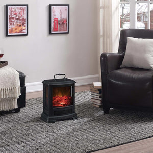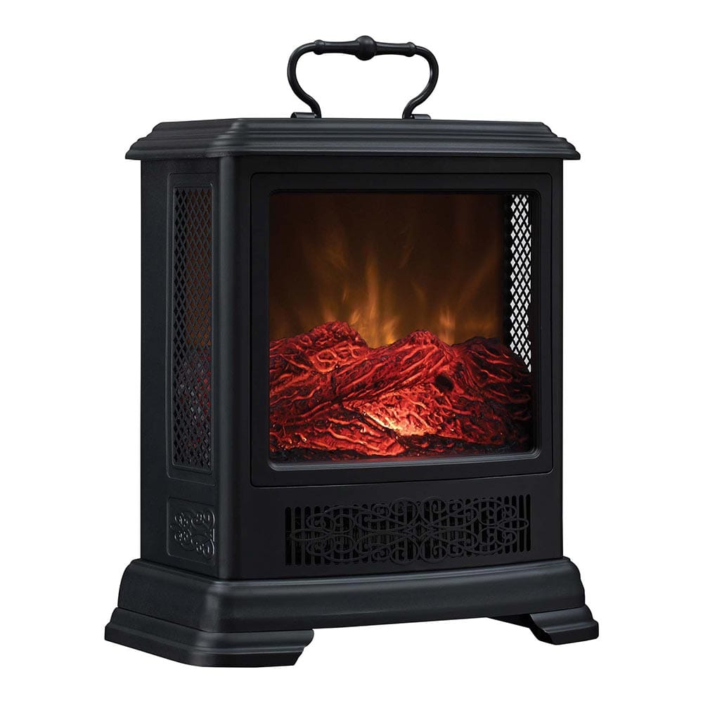 Enjoy the warmth and beauty of the Duraflame Black Freestanding Electric Stove, with its gracefully curved front, grated side viewing panels and decorative scroll detail. The realistic flame effect and glowing logs and ember bed can be used with or without heat, leaving you free to enjoy the ambiance of a gentle rolling fire all year long. This electric stove provides supplemental zone heating for up to 400 square feet. Heat settings include 750 Watts and 1,500 Watts. The electric stove heater comes fully assembled and ready to use directly out of the box!