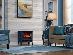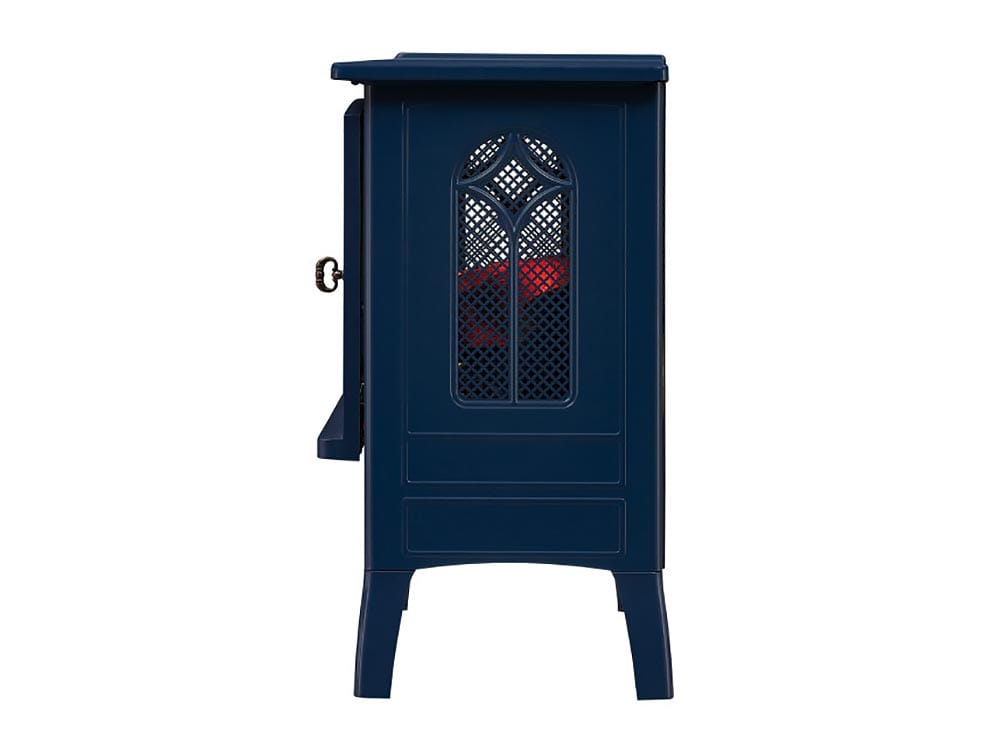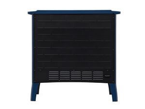 "Classic charm". Those are the words that come to mind when describing the Duraflame Navy 3D InfraGen Electric Fireplace Stove. This appealing stove features a traditional design with fine detail embellishments such as a 3-view fireplace, decorative mesh side paneling, and tasteful hardware. The stove's unique navy finish is a truly beautiful and refreshing spin on a more traditional design. You'll love the way this "pop" of color will make your room come to life the moment you set it up. When turned on, the unit makes a stunning visual display with its patented 3D flame technology. These specially configured lighting projections recreate the illusion of a flickering fire with a heightened level of authenticity. Watch as the "flames" appear to rise from behind, between and in front of the inner glowing log set. The overall effect is truly amazing and will have both you and your guests believing it is a real burning fire. Making use of another technological advancement, is the stoves integrated heater. InfraGen technology combines the benefits of voluminous heating from infrared quartz tubes with instant, directional heat that comes from halogen bulbs. This means you'll be able to fill your space (up to 1,000 Sq. Ft. ) with safe, comforting supplemental heat, as well as feel a more direct and rapid warmth. The heater can be set using the thermostatic controls which will maintain the desired temperature by cycling the unit on or off as needed. A multi-function remote is included and can be used to operate the heater, flames and on/off timer. A Night Mode can also be selected to disengage the halogen heating bulb, which will reduce the ambient glow produced from the heater. This is an ideal feature if the unit is placed in a bedroom. For added safety, the heater has integrated overheat protection that will automatically shut the unit off to prevent overheating.