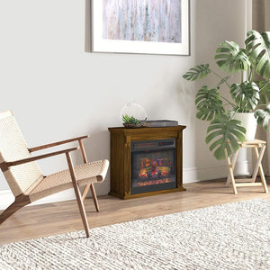 The fireplace insert features an elegant stacked stone back panel, decorative grate and glowing logs that adds to the overall realism of the unit. Adjustable flame effects offer five speed and five brightness settings and can be used with or without heat for true year-round enjoyment. Set the thermostat in two degree increments between 62 and 82 degrees Fahrenheit and use the timer to set the unit to turn off anytime from 30 minutes to nine hours. A convenient remote control is included with the fireplace for easy operation of the various features.