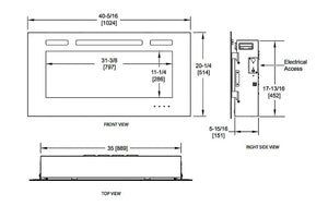 The 40" Allusion also features an integrated, 5,000 BTU supplemental heater that is capable of filling areas up to 400 Sq. Ft. wish comforting, supplemental warmth. On the other hand, when additional heat is not needed in your space, the heater can be turned off while the dramatic flame projections remain, allowing you to enjoy the fireplace year-round, despite the outside temperatures. A multi-function remote control makes operation simple, easy and convenient, while manual touch controls offer yet another options for adjusting features.