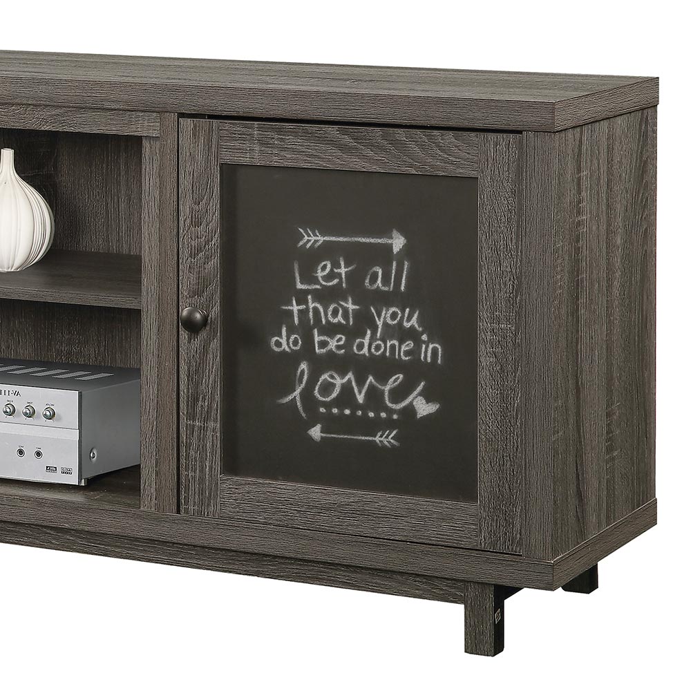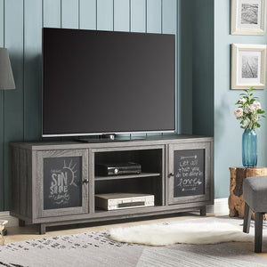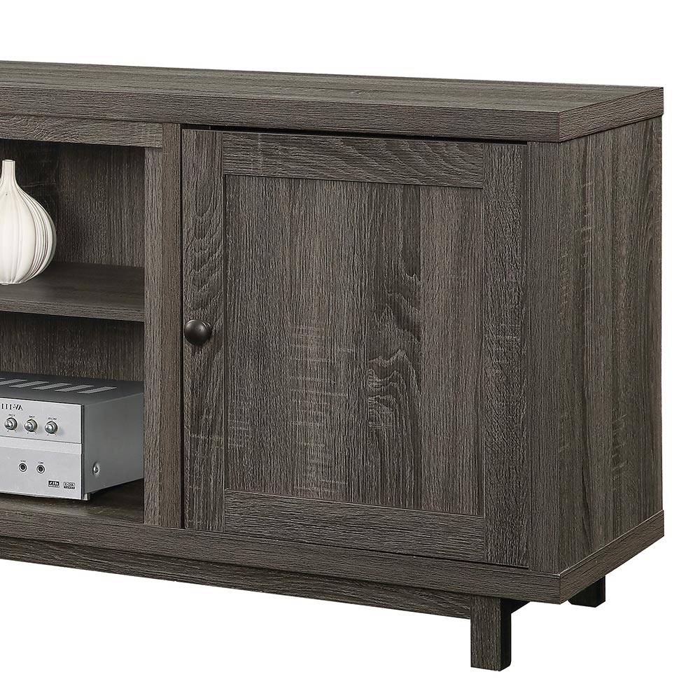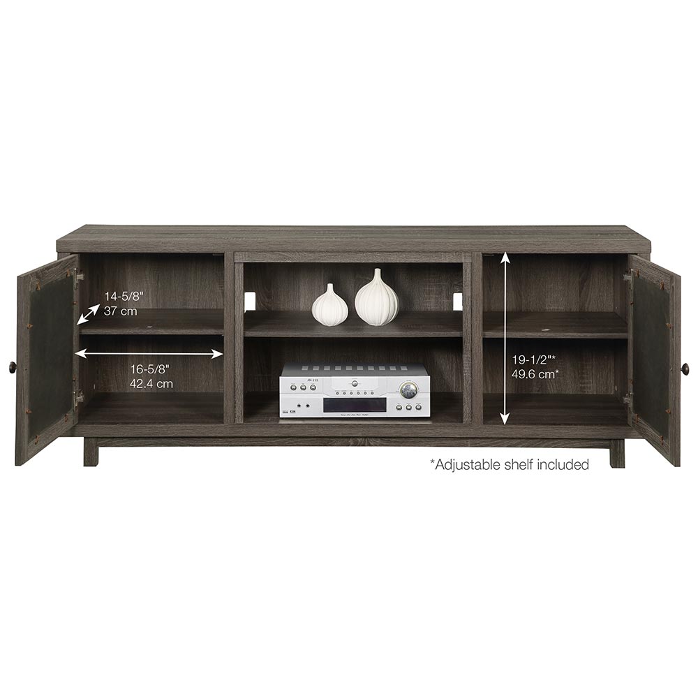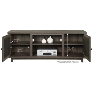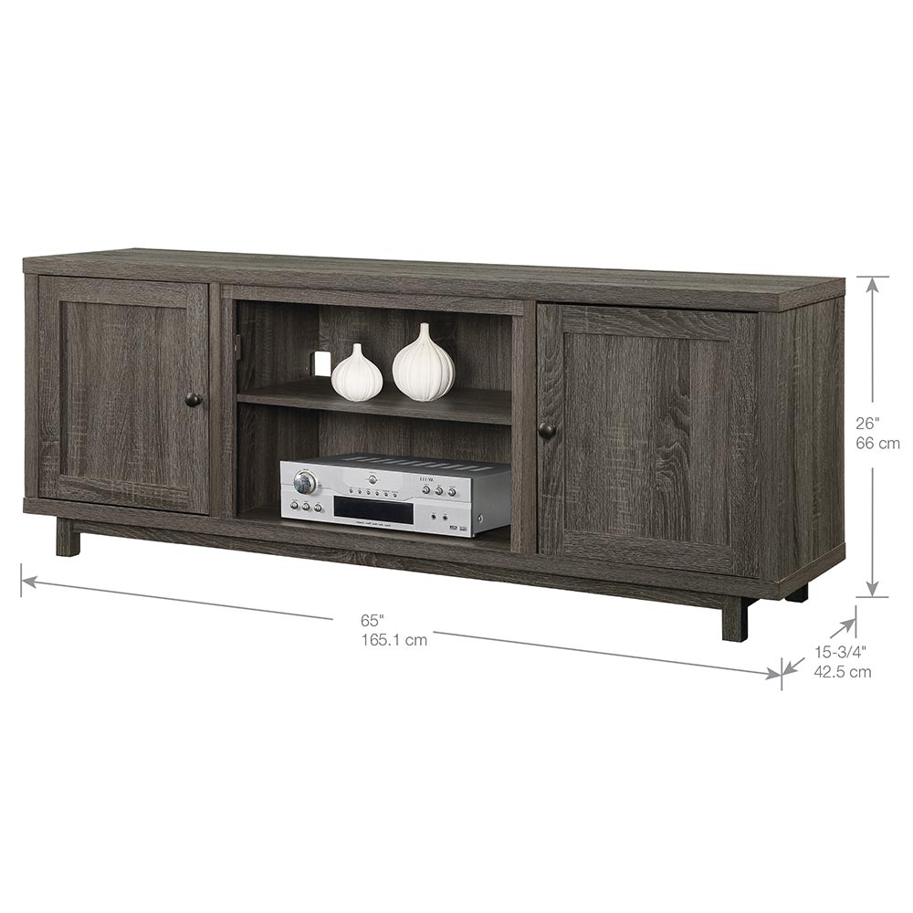 Whether you're decorating a new space or updating an existing, adding the Jesse TV Stand is sure to bring your space a strong contemporary appeal. This low-profile unit is capable of holding up to a 65" flat screen TV and features two side cabinets as well as open center shelving which provides more than enough storage for your DVD player, cable box, gaming consoles and decorative accessories. Integrated cable management holes help keep all your component cables neat and tidy at all times. A special feature of this media console is reversible cabinet doors that provide two different looks. The Jesse assembles with ease and will have you enjoying your new home theater setup in no time at all.
