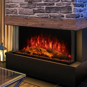 Introducing the Sedona Pro Multi Built-In Electric Fireplace from Modern Flames. This fireplace features Modern Flames' innovative Hybrid-FX Flame Technology, which creates a stunning organic flame pattern with high intensity RGB colors. It also includes a multi-color ember bed and downlights, clear acrylic stone media, black smoke acrylic crystals, and a hand-painted lighted canyon driftwood log set. The Sedona Pro can be configured as a single sided, left corner, right corner, or 3-sided bay fireplace. It can be partially recessed or fully recessed for a built-in clean face look. The Sedona fireplace also features a highly efficient PTC ceramic 5000 BTU heater that can produce supplemental warmth for areas up to 400 Sq. Ft. in size. Use the included multi-function remote or download the full featured WiFi app to control the fireplace. With the app, you can adjust the flame intensity, ember bed and downlight colors, and more. So add some ambiance to your home with the Sedona Pro Multi Built-In Electric Fireplace.