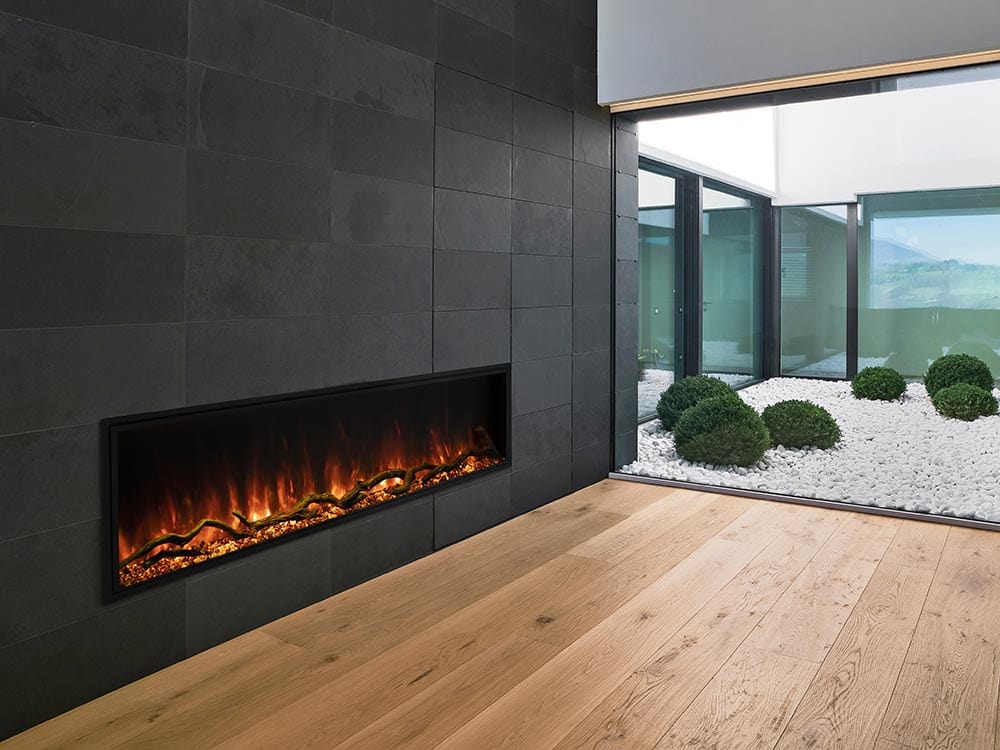 The Landscape Pro Slim electric fireplace series by Modern Flames is the perfect option for any customer looking for a unique frameless look installed into a 2” x 6” wall. The slim profile of this unit is designed to specifically address those installations with narrower walls. With hard-wired installation, the fireplace allows for a clean, undistracted final appearance - especially with its impressive edge-to-edge viewing area.