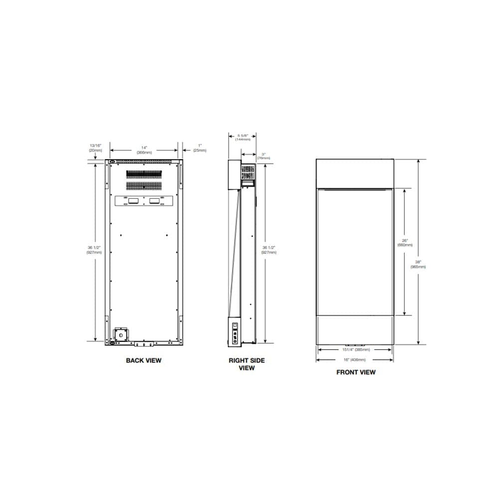 Integrated into the top of the unit is a powerful, fan-forced heater capable of warming rooms up to 400 Sq. Ft. in size. Depending on your needs and desired finished look, the fireplace can be mounted directly to a wall or partially recessed for a less obtrusive appearance. A multi-function remote is also included and offers complete operation of the various flame and lighting features as well as the heater.