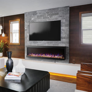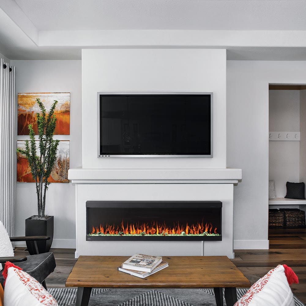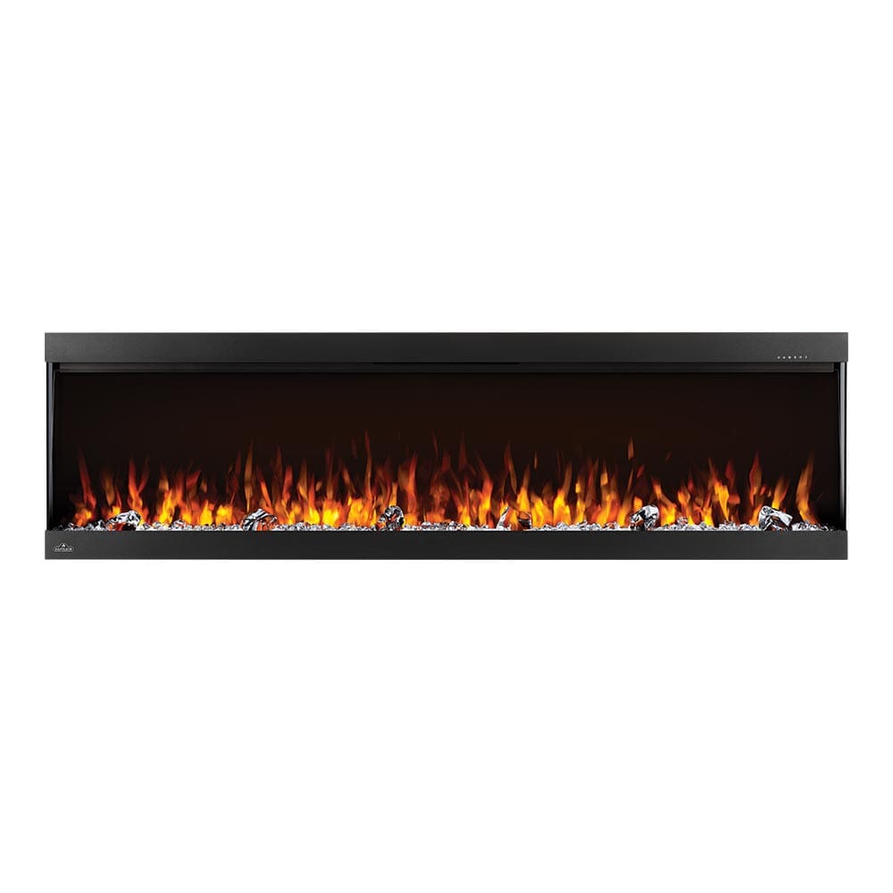 The Trivista Pictura features an integrated supplemental heater with a Low/High setting allowing you to keep your room comfortable year round, filling your space with comforting warmth with just the press of a button. You'll note that the unique angled glass front helps to direct the heat down and out into your room, for better displacement. Designed for true year-round use and enjoyment, the heater operates independently from the flame effects, allowing you to simply turn off the heater and still enjoy the soothing effects of the dancing flames every day of the year! Give your room a fresh and modern focal point with the addition of the Napoleon 60-In TriVista Pictura Wall Mount Electric Fireplace