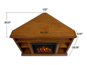 Churchill Corner Electric Fireplace Media Console in Oak
