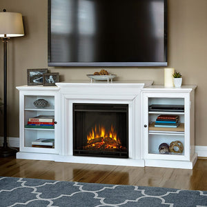 To give your room that extra element of comfort, simply turn on the fan-forced supplemental heater to fill your space with 4700 BTUs of gentle warmth. That's enough heat to help take the chill out of a 400 Sq. Ft. room. The Frederick comes with a multi-function remote control which allows you to operate the programmable thermostat, flame brightness settings as well as the on/off timer. Give your family room a much needed, high end upgrade with the addition of the Frederick Electric Fireplace Entertainment Center by Real Flame.