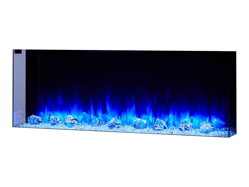 With its clear glass front and sides as well as no visible heating vents, this fireplace has a virtually uninterrupted appearance that creates a sophisticated appeal. The bright, vibrant and life-like flame effects are truly showcased with this model and offers 4 flame color choices and 14 ember bed color combinations for a truly customizable experience. Adding to this are two standard ember bed options, either clear crystals or driftwood logs (both included).