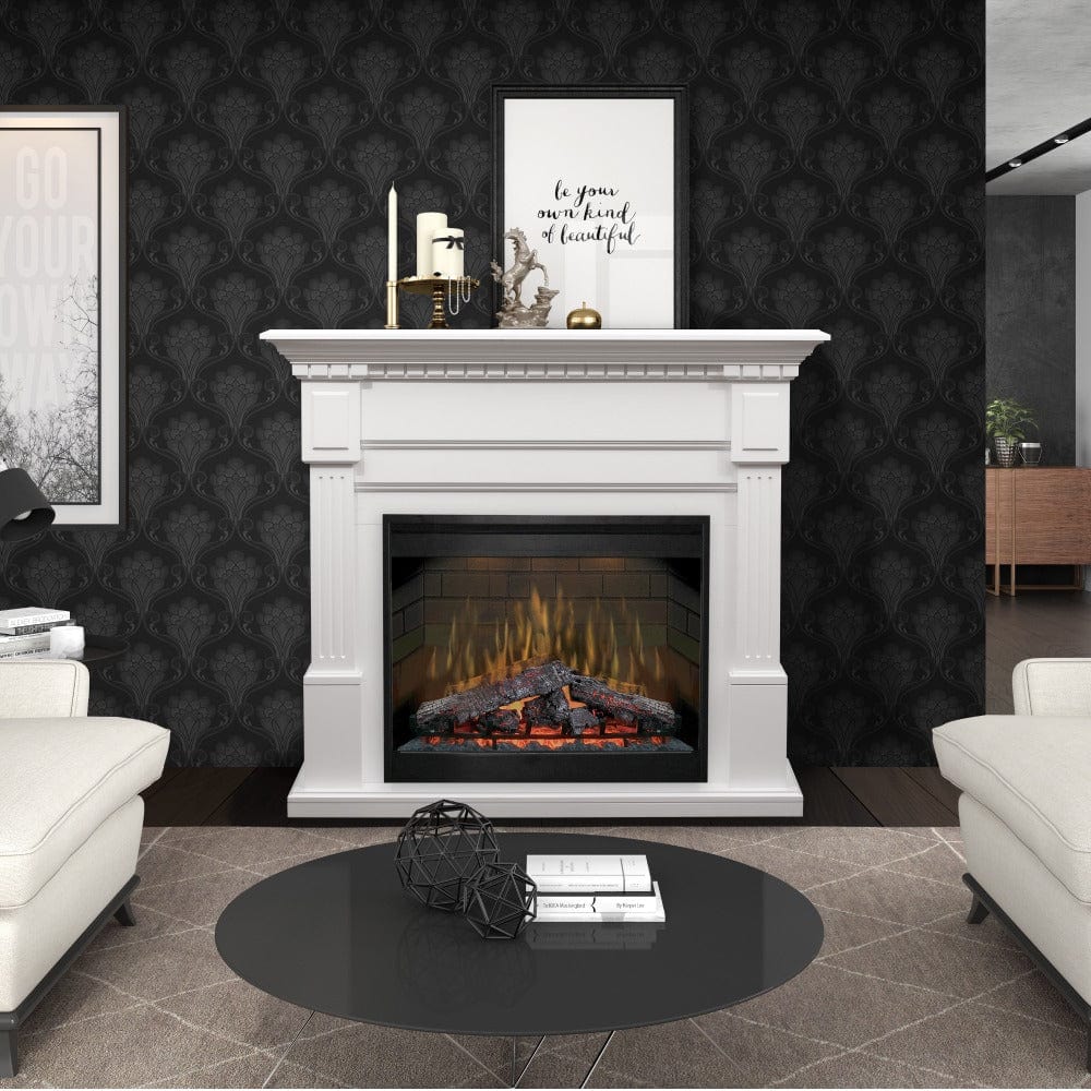 This Electric Fireplace Mantel will work in any setting, including an office, bedroom, living room, or dining area, and is easy to move and reposition if needed. The glass front remains cool to the touch, which promises optimal safety, and the fireplace requires only a single 120v outlet to operate. With its classic design and charm, its ample size, and its many amazing features, this Dimplex fireplace is a full home and decor solution. Whether you want supplemental heating or need to boost the comfort and ambiance of a room, this fireplace will deliver.