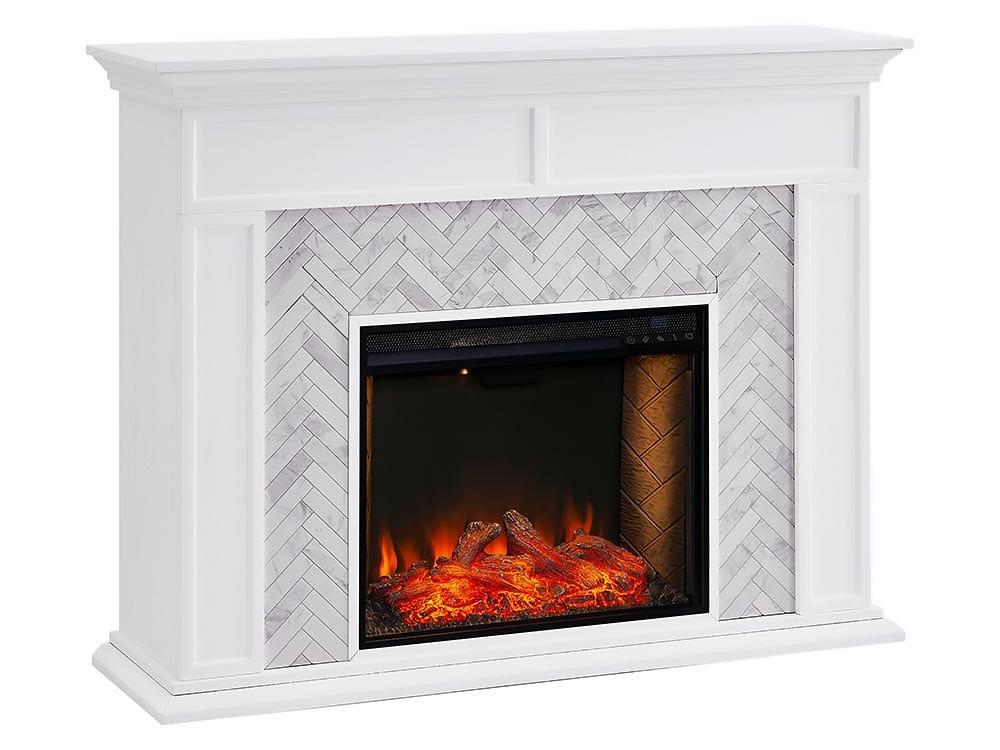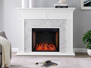 Torlington Electric Fireplace Mantel Package in White w/ Smart Firebox